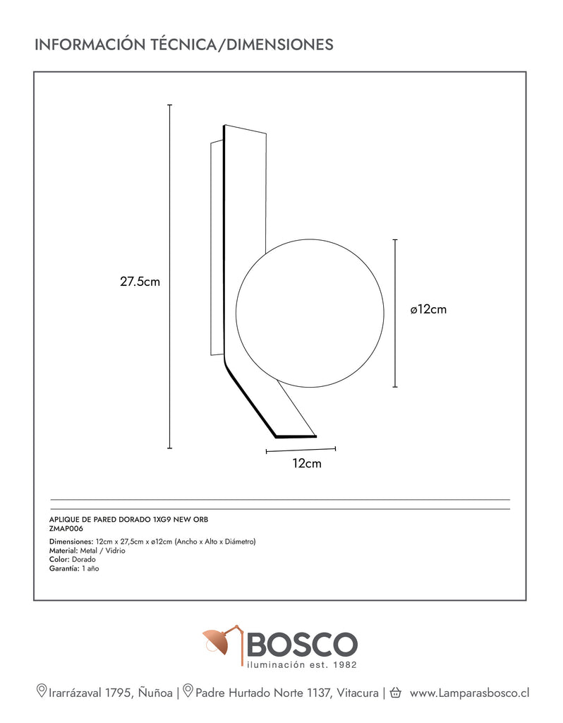 APLIQUE DE PARED DORADO 1XG9 NEW ORB