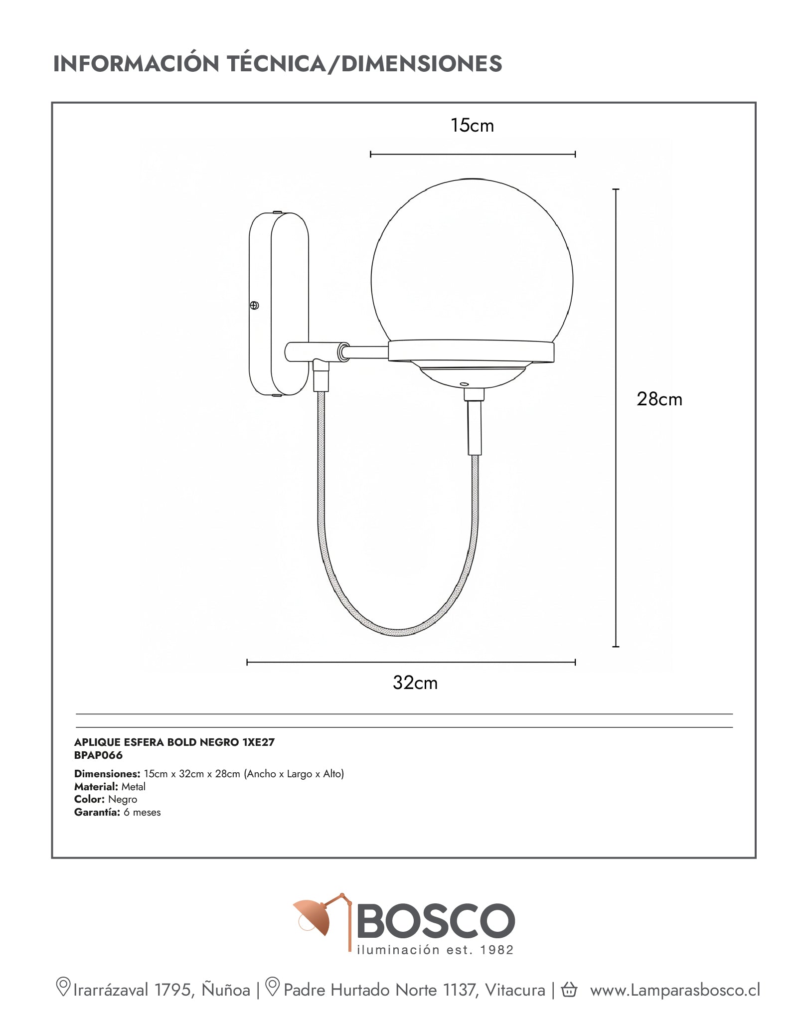 APLIQUE ESFERA BOLD NEGRO 1XE27
