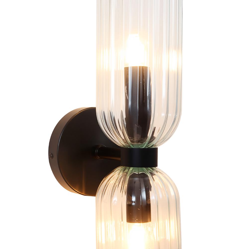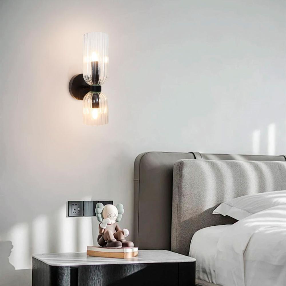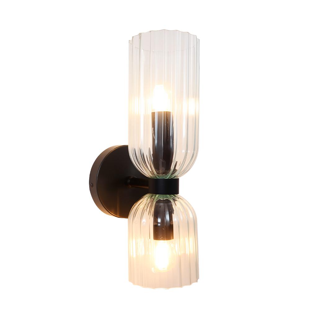 Diseño vintage con un giro elegante. El aplique Gizzi combina vidrio texturizado con detalles negros para crear una luz cálida y envolvente. Ideal para pasillos, dormitorios o rincones acogedores que buscan un toque de sofisticación con personalidad retro. Compatible con 2 ampolletas E14.