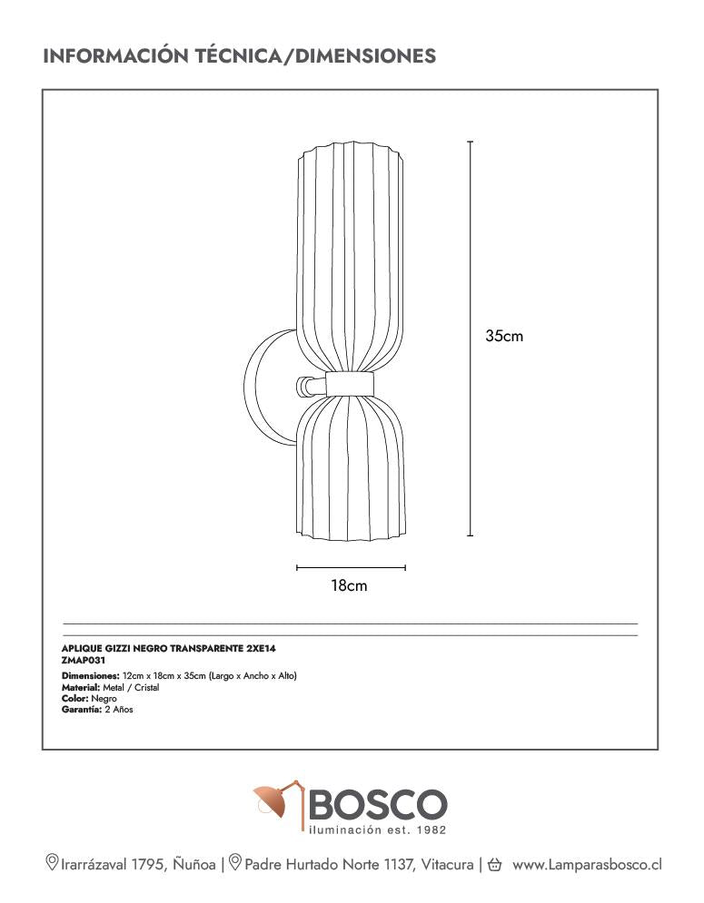 APLIQUE GIZZI NEGRO TRANSPARENTE 2XE14