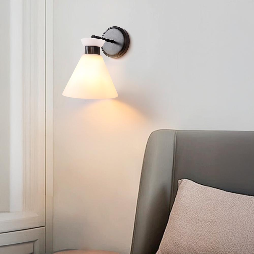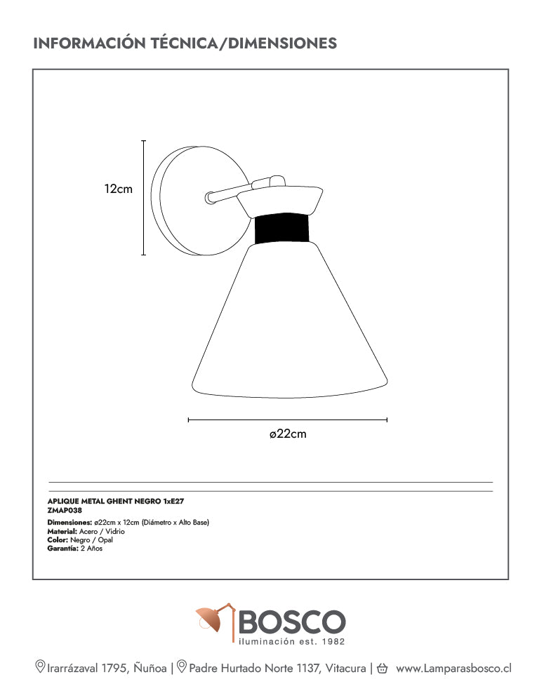Con un diseño limpio y contemporáneo, este aplique destaca por su estructura metálica de color negro y pantalla de vidrio opal, que emite una luz cálida y envolvente. Ideal para pasillos, baños o como luz de acento, aporta un toque sofisticado sin sobrecargar el ambiente.