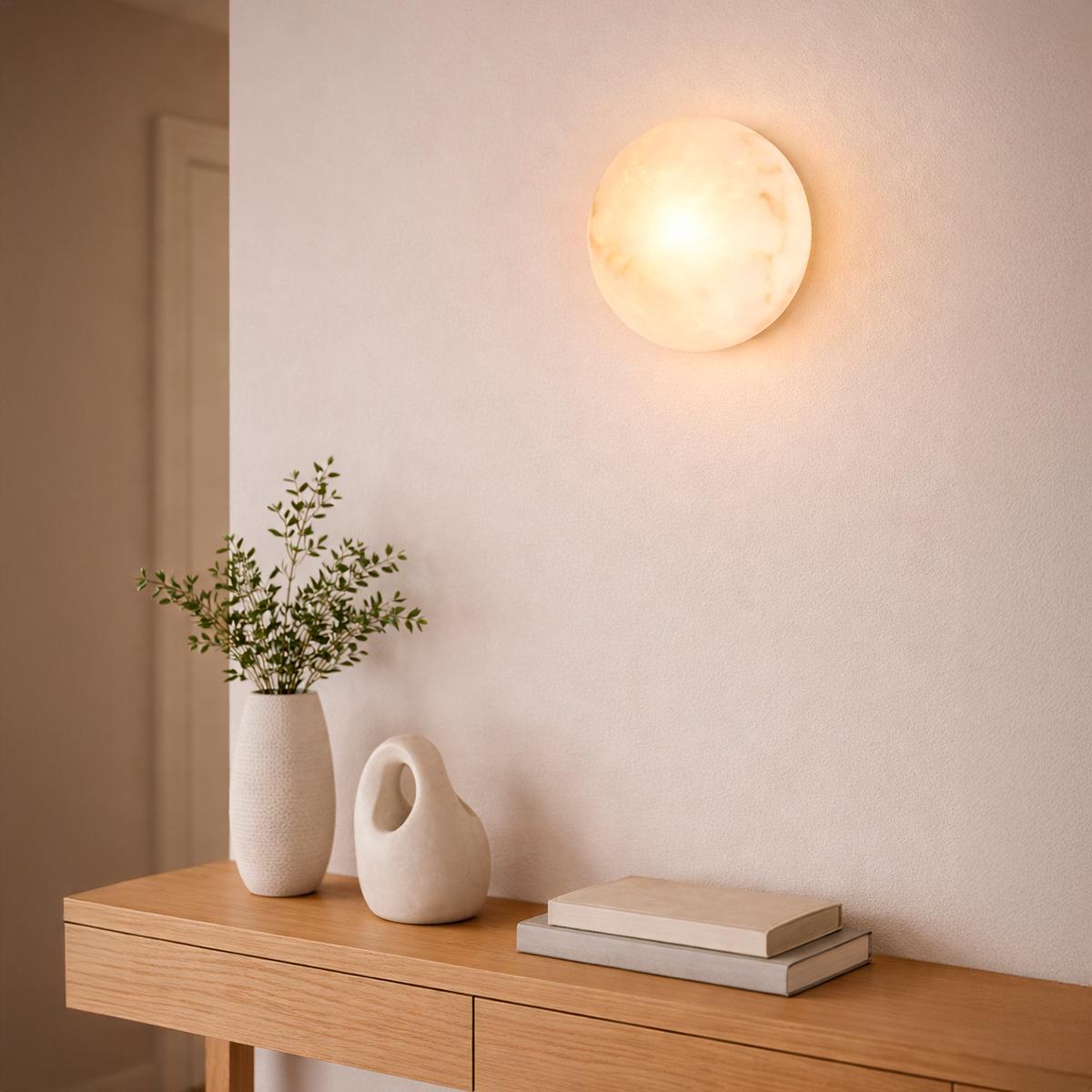 La iluminación puede sentirse tan natural como la piedra que la contiene. El Aplique Olyss en alabastro permite que la luz atraviese suavemente el material, revelando sus vetas y generando un resplandor cálido y envolvente sobre el muro. Su diseño elegante y equilibrado lo hace ideal para pasillos, dormitorios o espacios de descanso. Compatible con ampolleta G9, es perfecto para sumar atmósfera y sofisticación con un estilo atemporal.