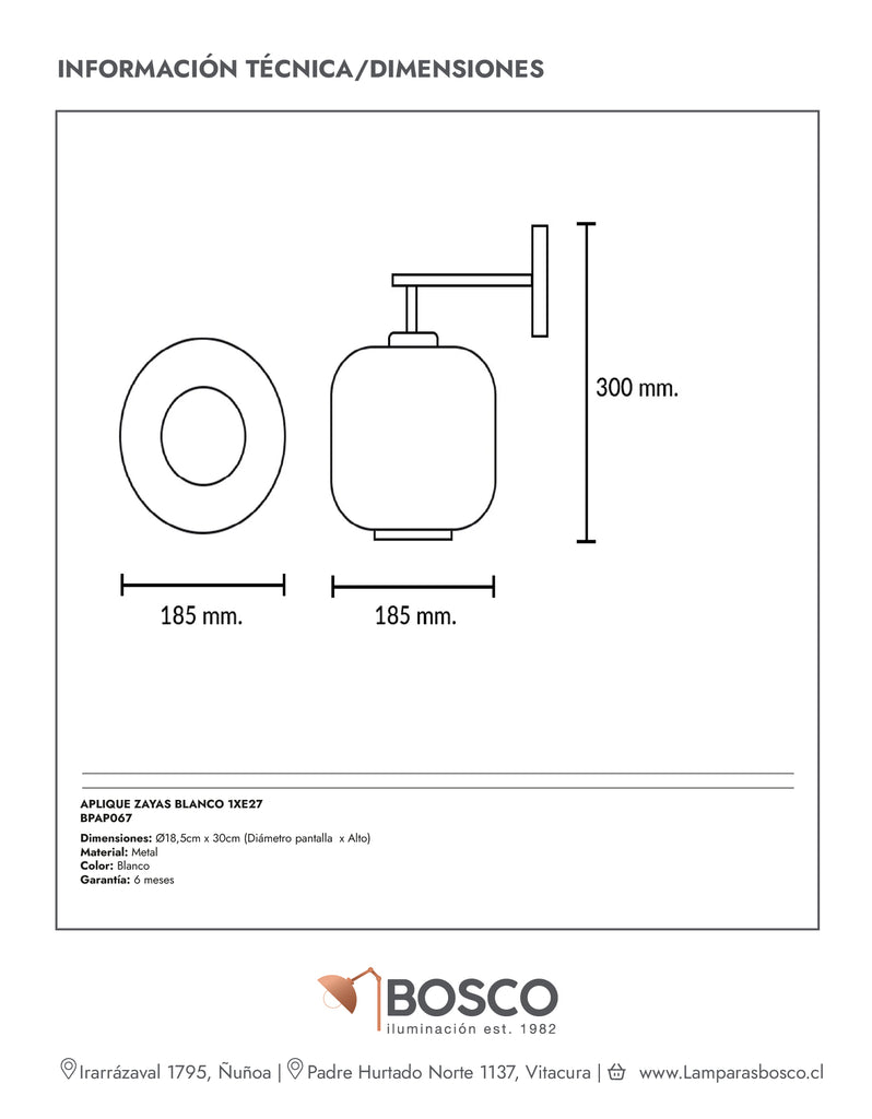 APLIQUE ZAYAS BLANCO 1XE27