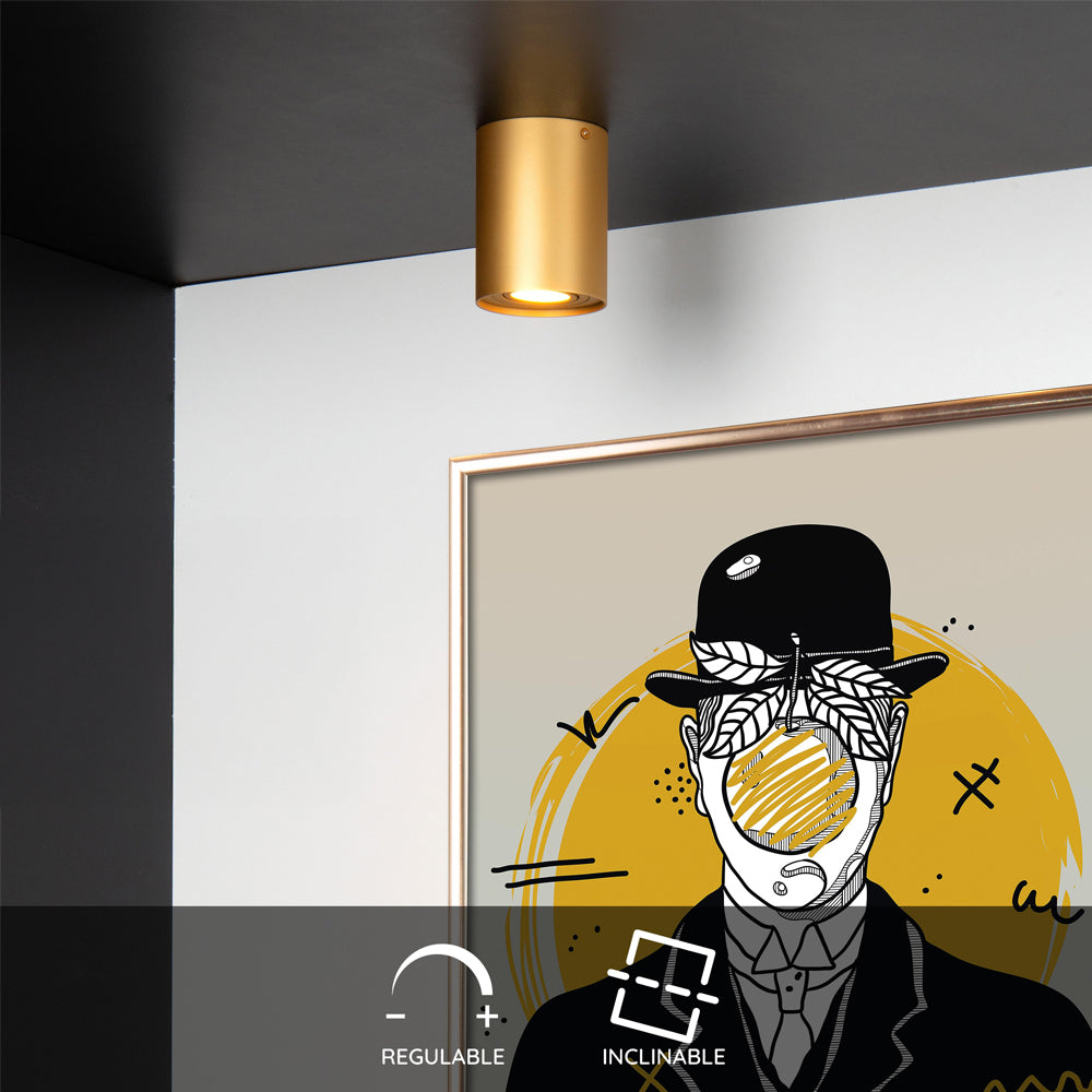 FOCO CILINDRO SOBREPUESTO TUBE DORADO Ø9,6cm 1XGU10