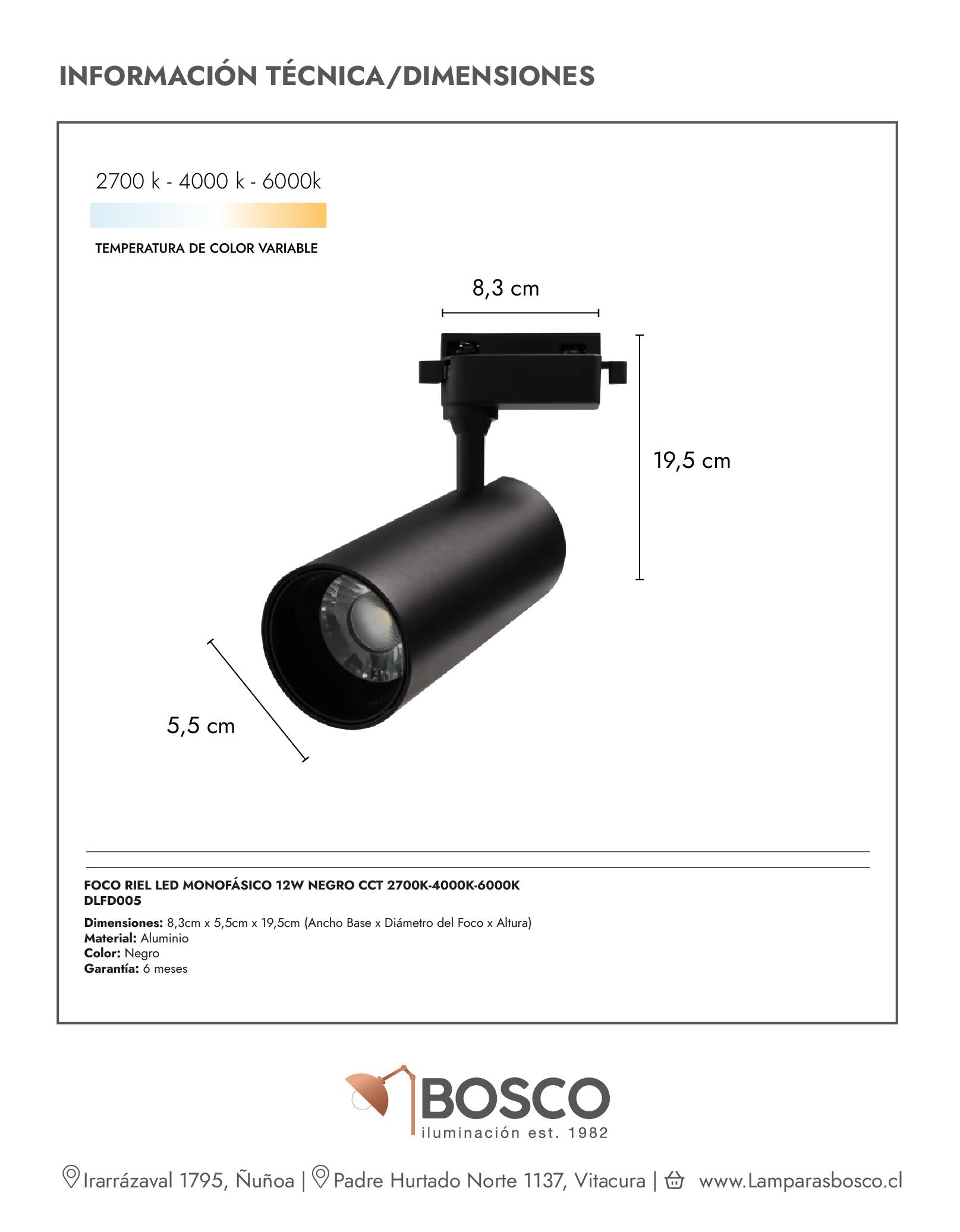 FOCO RIEL LED MONOFASICO 12W NEGRO CCT 2700K-4000K-6000K