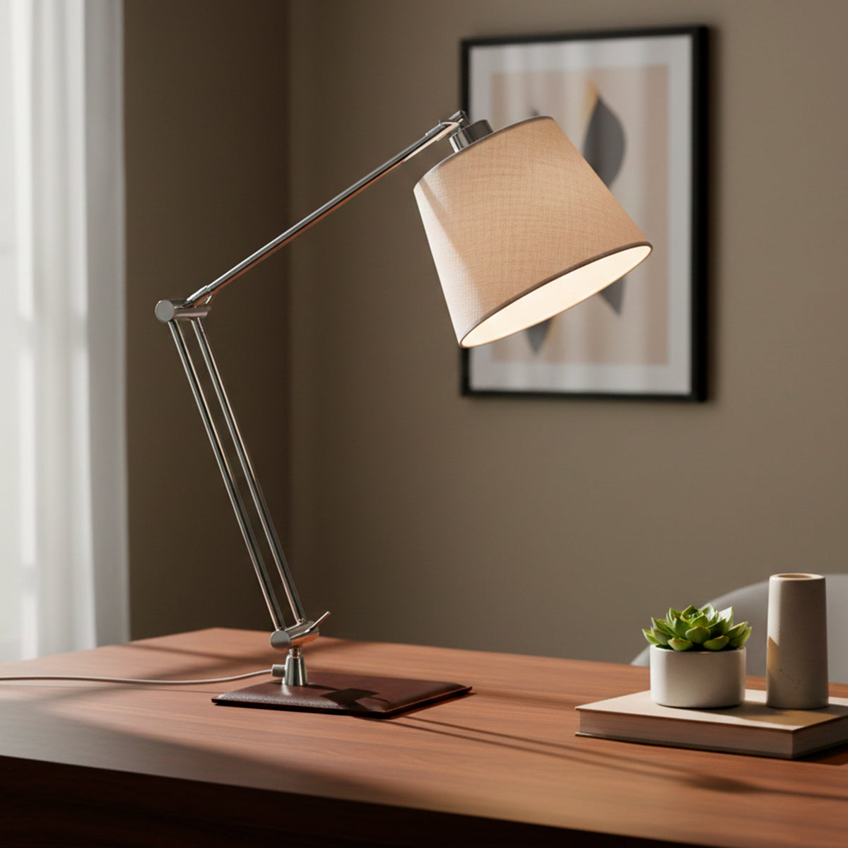 LAMPARA ARTICULADA SOBREMESA CUERO-CROMO