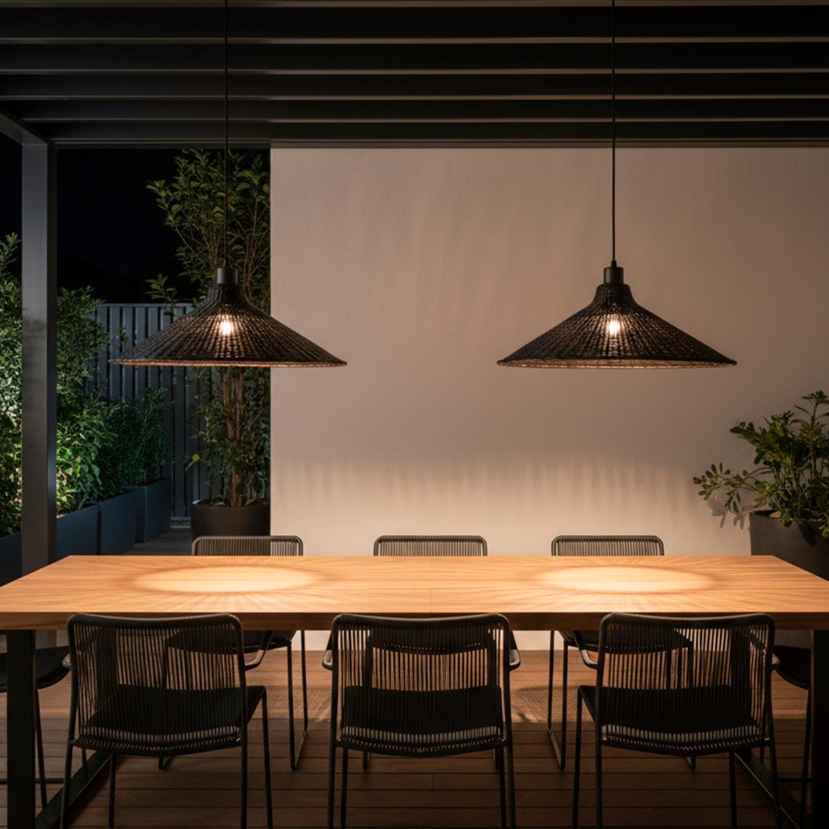 ¿Buscas una pieza que evoque la calma de la naturaleza pero con la fuerza del diseño urbano? La Lámpara de Fibra Amani destaca por su exquisito tejido en fibra natural teñida en un negro absoluto, ofreciendo un contraste visual que es tendencia en el interiorismo de lujo. Su amplia silueta cónica es ideal para coronar grandes mesas de comedor o terrazas techadas, convirtiéndose en un punto focal que irradia carácter y una calidez envolvente.
