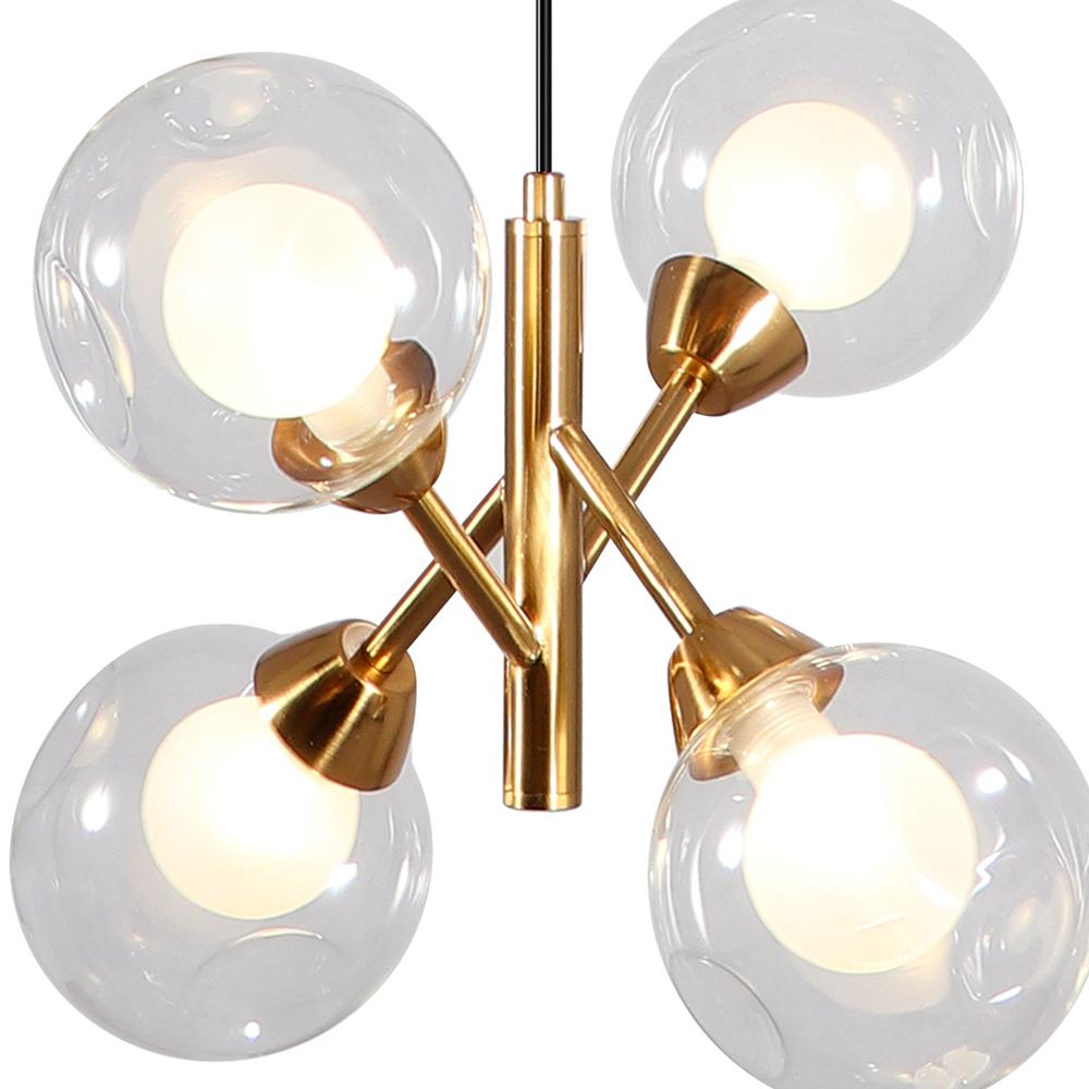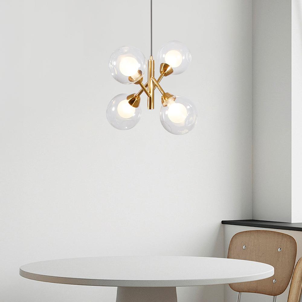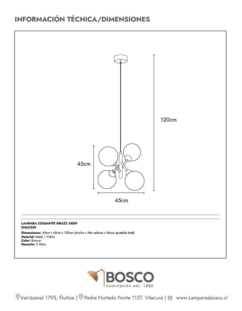 Una pieza escultural que no pasa desapercibida. La lámpara Grazz combina cuatro esferas de vidrio texturizado con un diseño colgante moderno y sofisticado. Ideal para transformar comedores, livings o entradas con un estilo único y envolvente. Compatible con ampolletas G9.