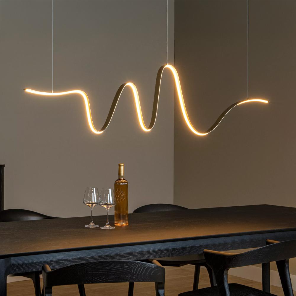 Una elegante línea baila en el techo. Lambada es una original lámpara colgante de formas orgánicas y divertidas. La lámpara colgante lleva integrada una ampolleta LED regulable con luz blanca y cálida que puede accionarse fácilmente el interruptor de pared. Para la instalación, tienes control total sobre la altura a la que cuelga la lámpara colgante. Con su forma única y exótica, Lambada proyecta la luz ideal sobre la mesa del comedor, como elemento decorativo en la entrada o como ambientador en el salón.