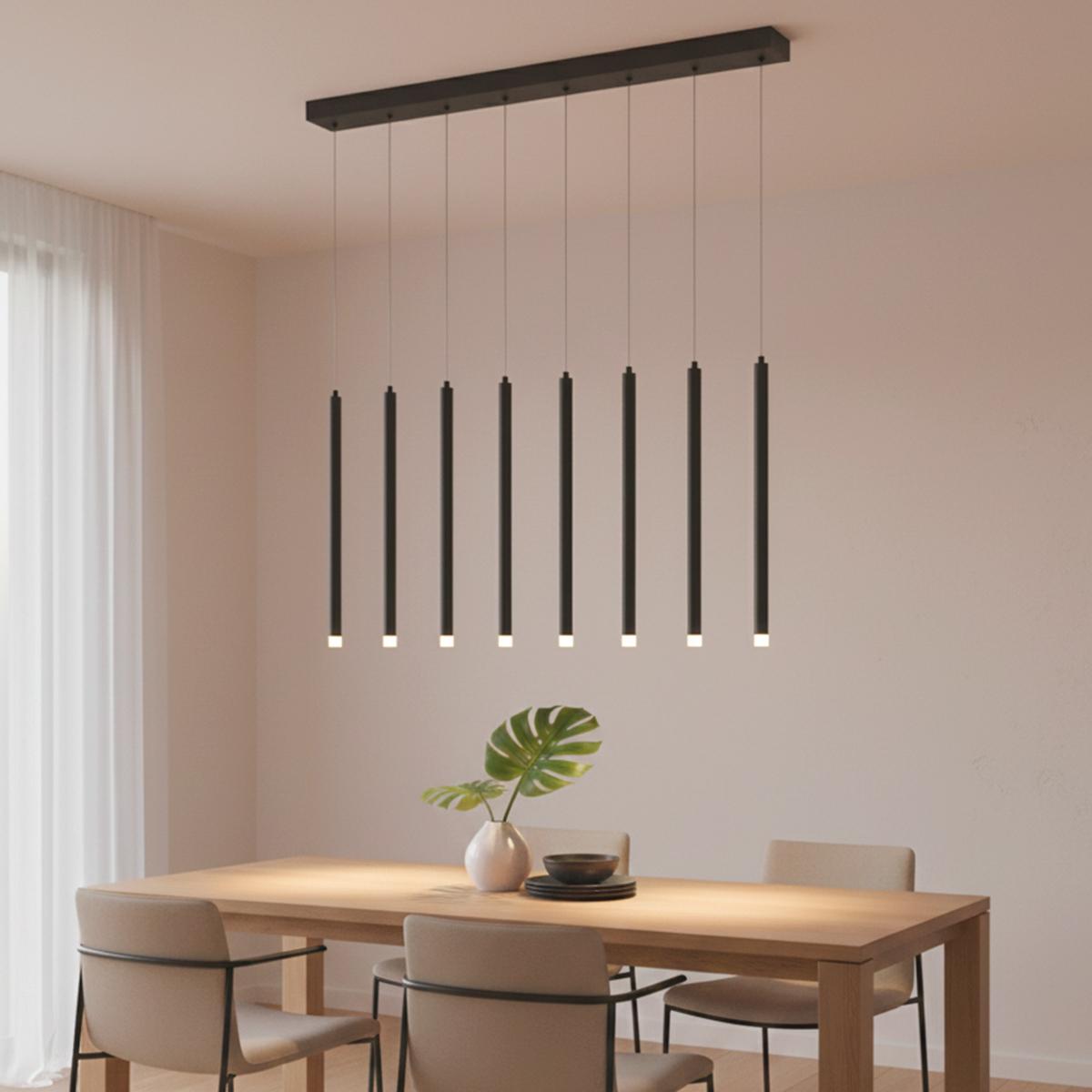 ¿Es posible iluminar sin interrumpir la vista? La Lámpara Colgante Trimle es una obra maestra de la iluminación interior que juega con la percepción y el espacio. Con su marco de aluminio negro y su cuerpo de acrílico transparente, esta lámpara colgante de diseño parece flotar en el aire, aportando un estilo contemporáneo y una sofisticación inigualable a tu comedor o sala de estar.