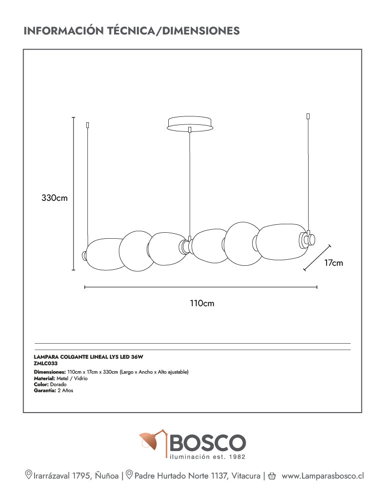 LAMPARA COLGANTE LINEAL LYS LED 36W