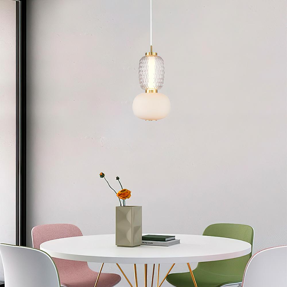 Un diseño elegante que mezcla lo contemporáneo con lo atemporal. Su pantalla de vidrio ámbar opalino filtra la luz con suavidad, creando una atmósfera cálida y envolvente. Gracias a su tecnología LED integrada de 11W, ilumina con eficiencia y estilo cualquier espacio: desde el comedor hasta una barra de cocina o rincón decorativo. Ideal para quienes buscan una lámpara decorativa con personalidad y luz cálida de 3000K.