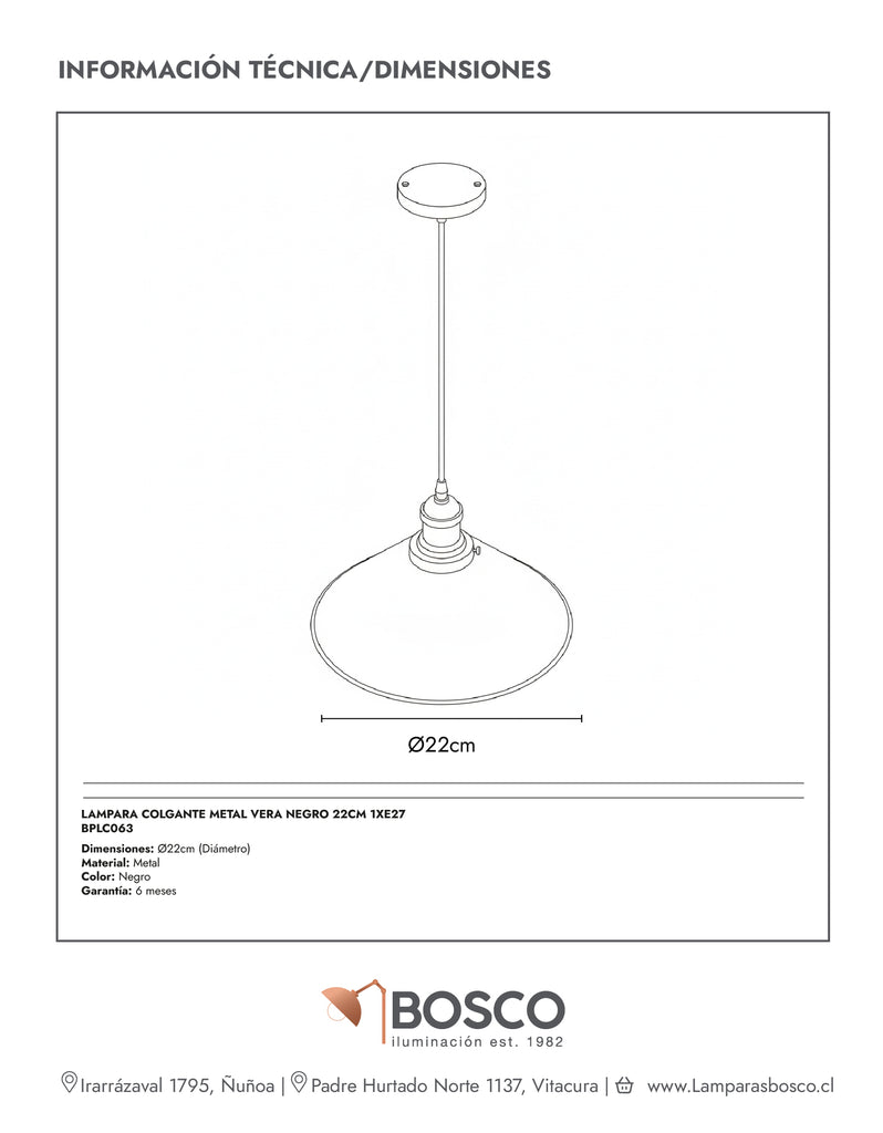 LAMPARA COLGANTE METAL VERA NEGRO 22CM 1XE27
