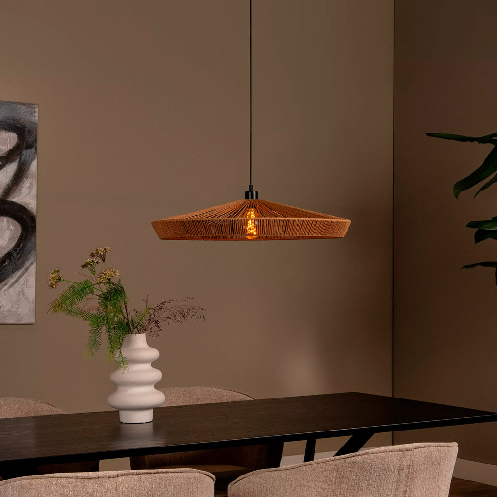 Gracias a la caña conseguirás atraer al instante un ambiente sureño y relajado para tu hogar. Yunkai es una lámpara colgante grande y redonda, de 70 cm de diámetro. Con su estructura abierta, no solo ella destaca, sino también su largo cableado. Esta lámpara pendular tiene una altura máxima ajustable de 145 cm. Una pieza verdaderamente llamativa para encima de la mesa del comedor o la compañera ideal para una acogedora zona de descanso.