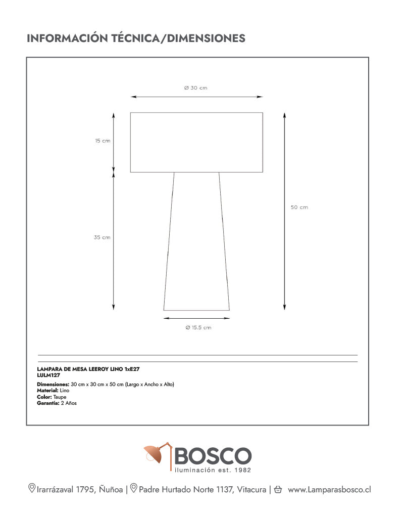 LAMPARA DE MESA LEEROY LINO 1xE27