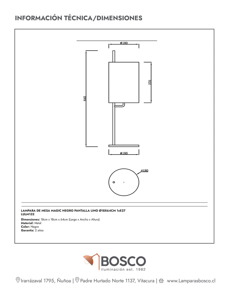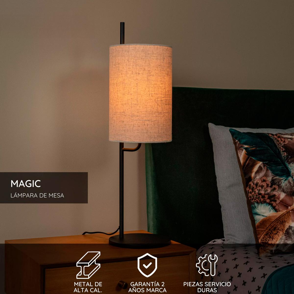 LAMPARA DE MESA MAGIC NEGRO PANTALLA LINO Ø18X64CM 1xE27