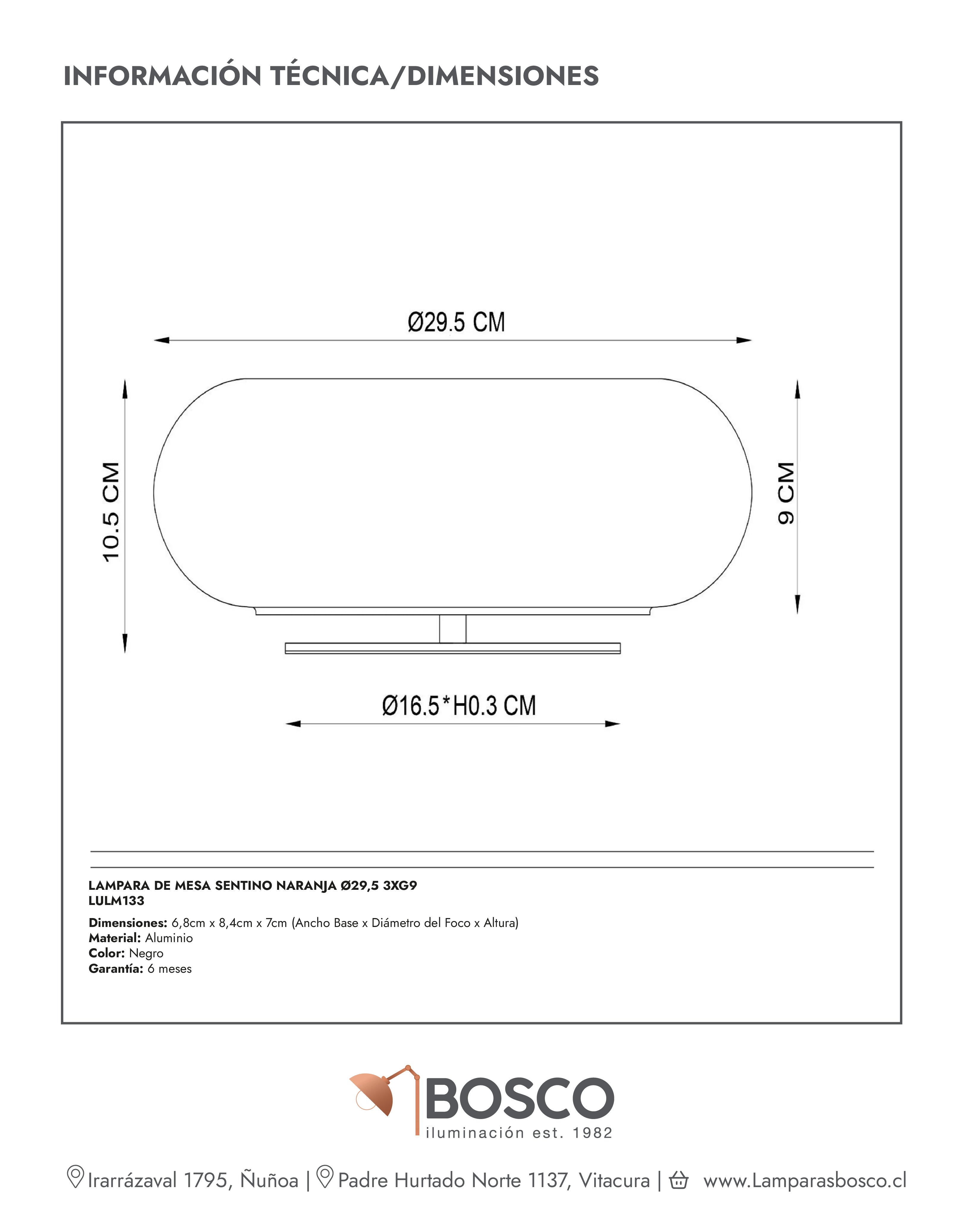 LAMPARA DE MESA SENTINO NARANJA Ø29,5 3XG9