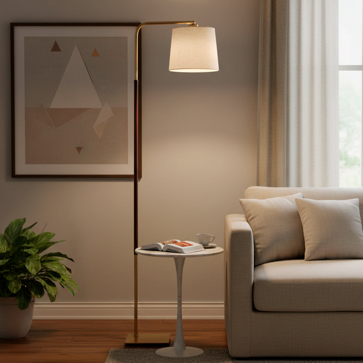 Con un diseño estilizado y elegante, la lámpara de pie Ele aporta calidez y carácter a cualquier espacio. Su estructura metálica en tono bronce combina con una pantalla textil color cuero que suaviza la luz y crea un ambiente acogedor. Ideal para el living, un rincón de lectura o junto a un sillón, su diseño clásico con un toque moderno se adapta a distintos estilos de decoración. Funciona con una ampolleta E27 (no incluida).