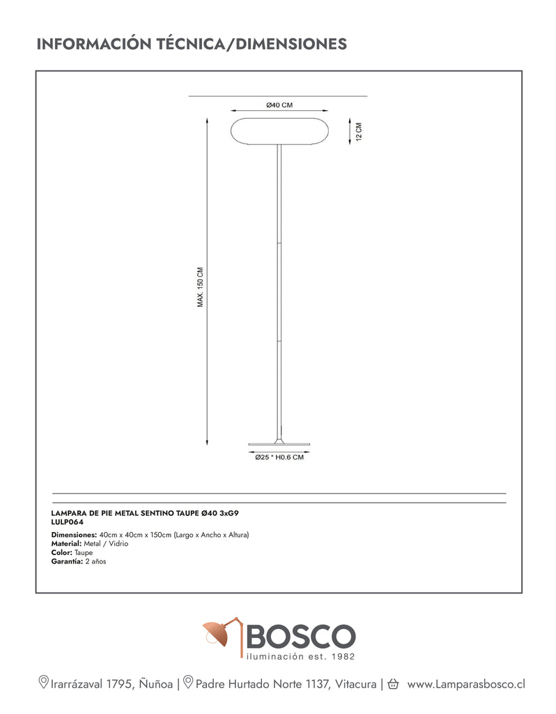 LAMPARA DE PIE METAL SENTINO TAUPE Ø40 3xG9