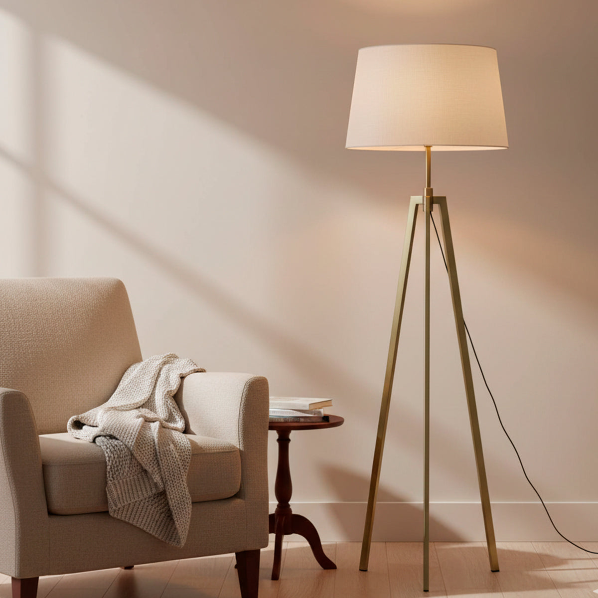 ¿Buscas una lámpara que combine estabilidad, diseño y una presencia escultural? La Lámpara de Pie Treo destaca por su sofisticada estructura de trípode en acabado bronce, una pieza que eleva instantáneamente el nivel estético de cualquier habitación. Ideal para iluminar rincones de lectura o para situarse junto al sofá, esta lámpara de Lámparas Bosco ofrece un equilibrio perfecto entre la firmeza del metal y una silueta ligera que no sobrecarga el espacio.
