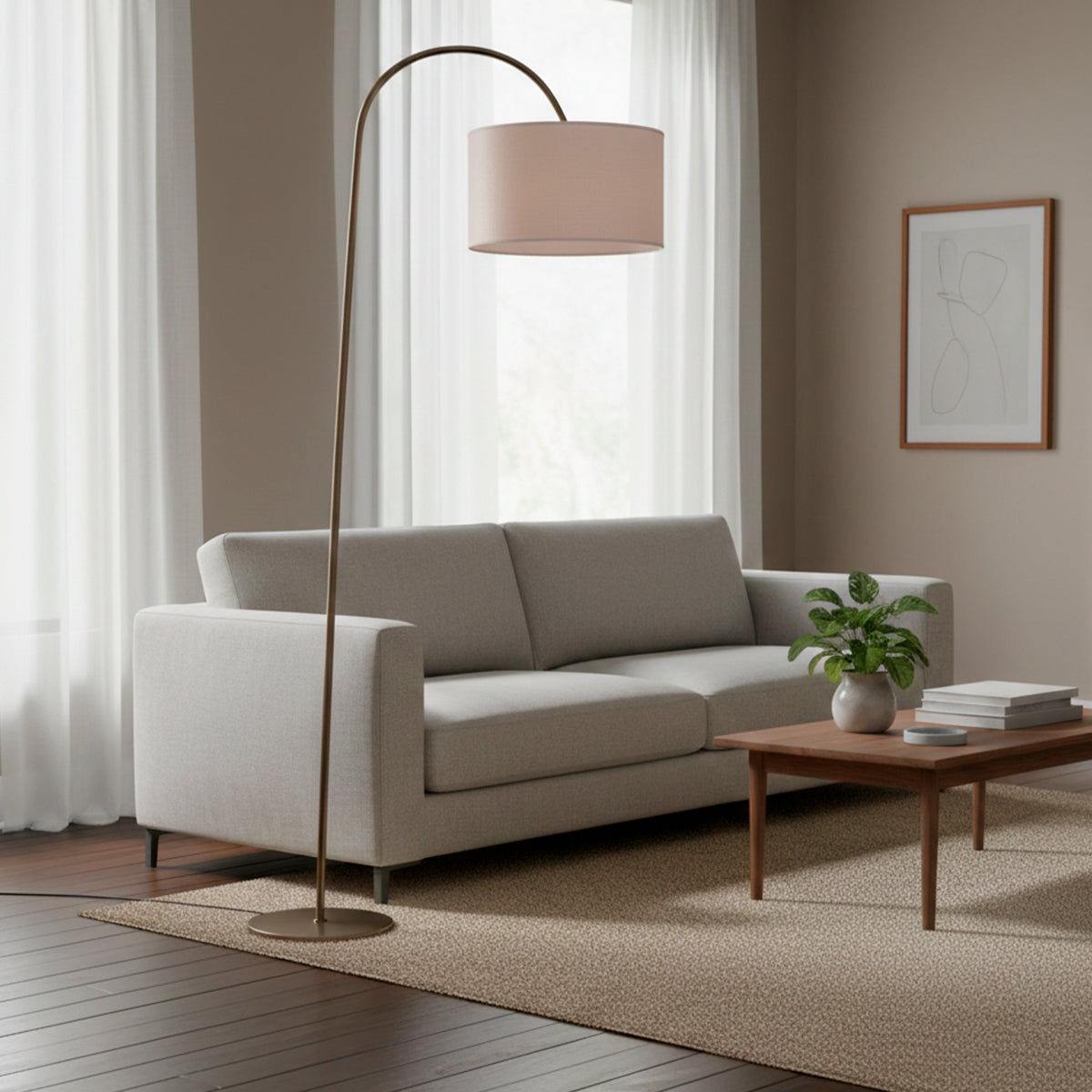 LAMPARA PIE CURVA BRONCE