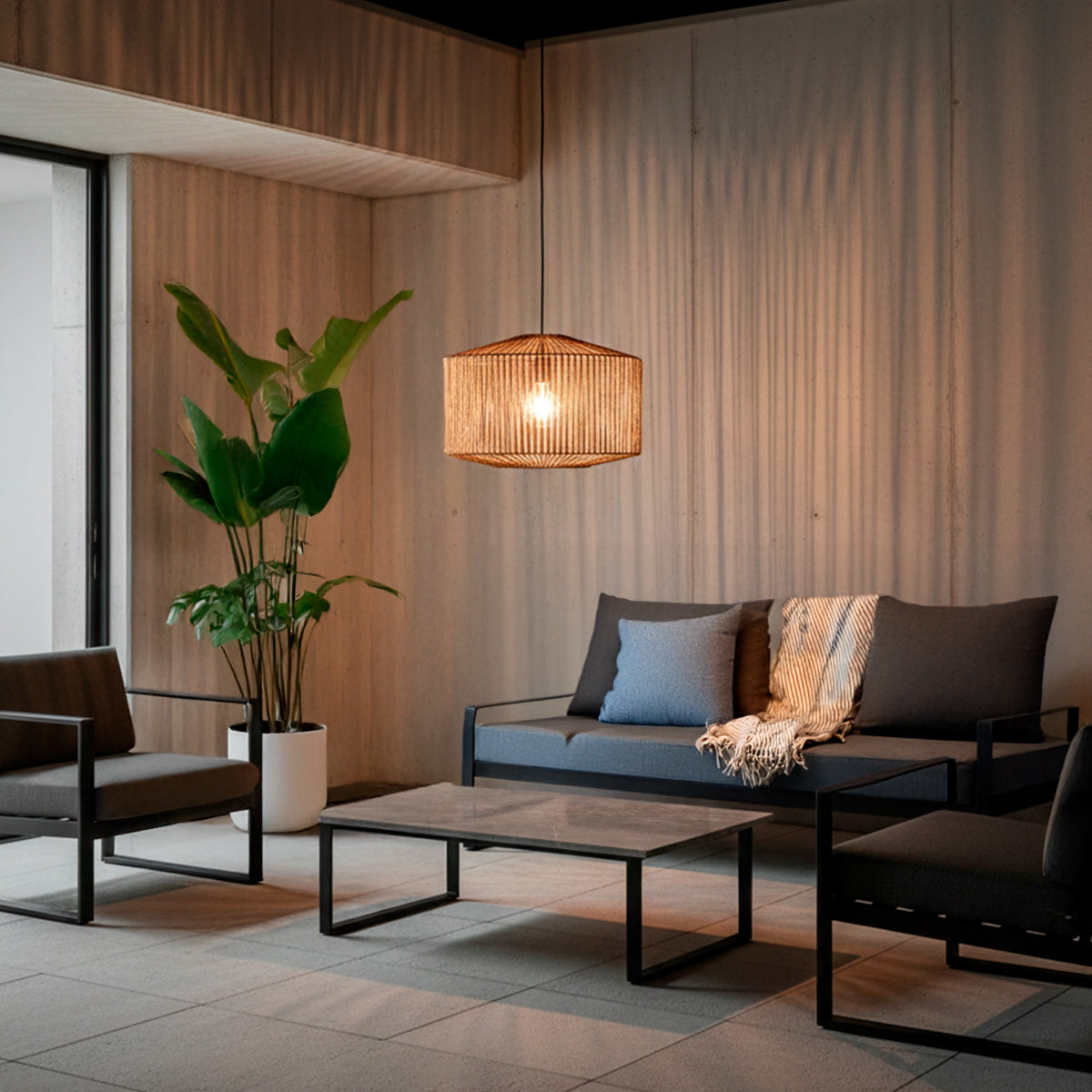 La lámpara tejida de fibra natural aporta un toque cálido y artesanal a cualquier ambiente. Su estructura de fibras entrelazadas a mano filtra la luz suavemente, generando una atmósfera acogedora en comedores, livings o dormitorios. Con un diseño versátil y liviano, se integra fácilmente en estilos boho, mediterráneo o rústico. Funciona con ampolleta E27 (no incluida).